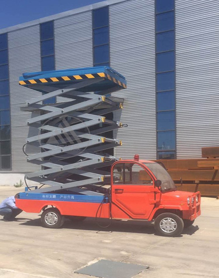 車載剪叉式升降機是集四輪移動與二輪牽引式于一身,采用汽車底盤做平臺底架,利用汽車發(fā)動做動力,既可行駛又可驅動升降機。車載剪叉式升降機以小型貨車(汽車)或電瓶車為載體,移動靈活迅速,操作簡單,作業(yè)范圍廣。車載剪叉式升降機采用剪式升降結構,剪叉結構采用優(yōu)質矩形錳鋼管制作,整體強度高,載重量大,升降穩(wěn)定性好,廣泛用于城建、油田、交通、市政、室外廣告等行業(yè)。