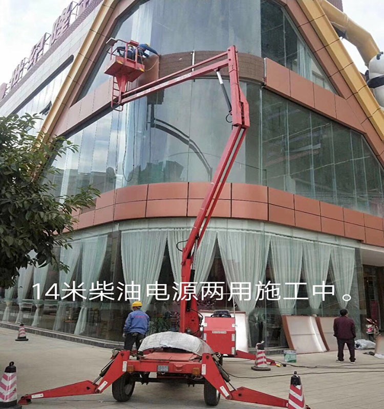 曲臂式高空作業(yè)平臺采用多級折臂組合方式設(shè)計,靈活方便,可跨越一定的障礙,在一處升降進行多點作業(yè)。安全性較好,移動便捷,不過成本頎長。 曲臂高空作業(yè)平臺車廣泛適合使用于城市管理工作、電力、路燈、廣告、通訊、取景、園林、交通、碼頭、機場口岸、大型工礦公司等行業(yè)的安裝維修及登高作業(yè)。